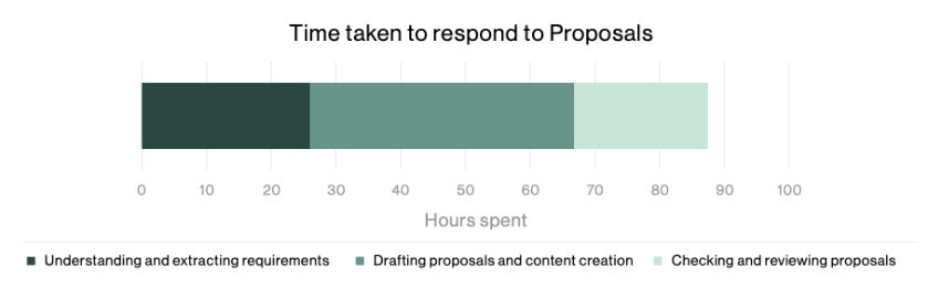 In our latest research, 74.6% of decision-makers said the complexity of RFPs is increasing. Nearly as many, 72.8%, said they struggle to meet deadlines. Teams are now spending an average of 87.4 hours per proposal but still fail to win over half of them.